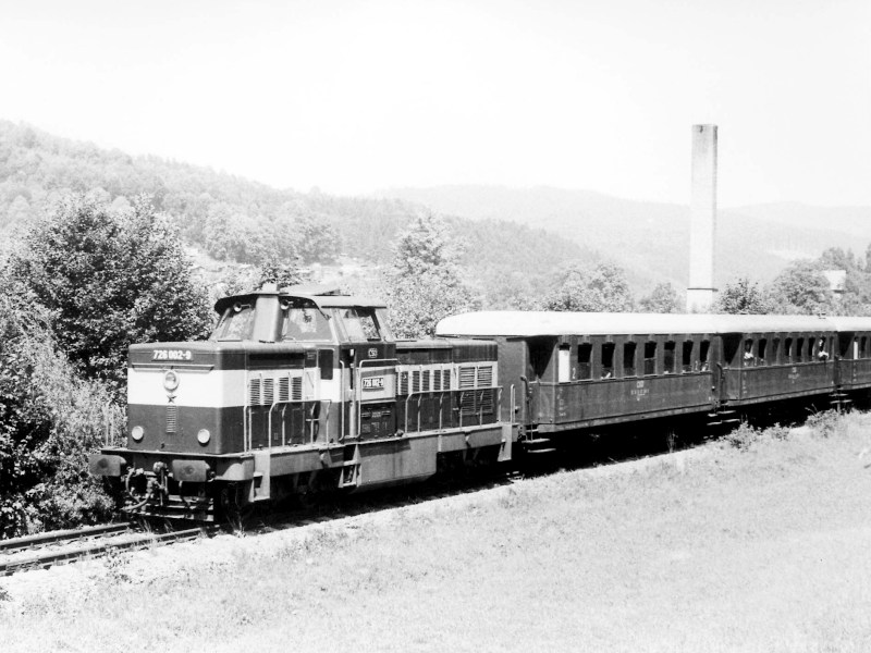 s pravidelným osobním vlakem mezi Jasenicí a Vsetínem v létě roku 1988.