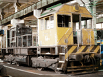 Pohled na odstrojenou lokomotivu 721 533-8 s dobře viditelným samostatným chladícím blokem.